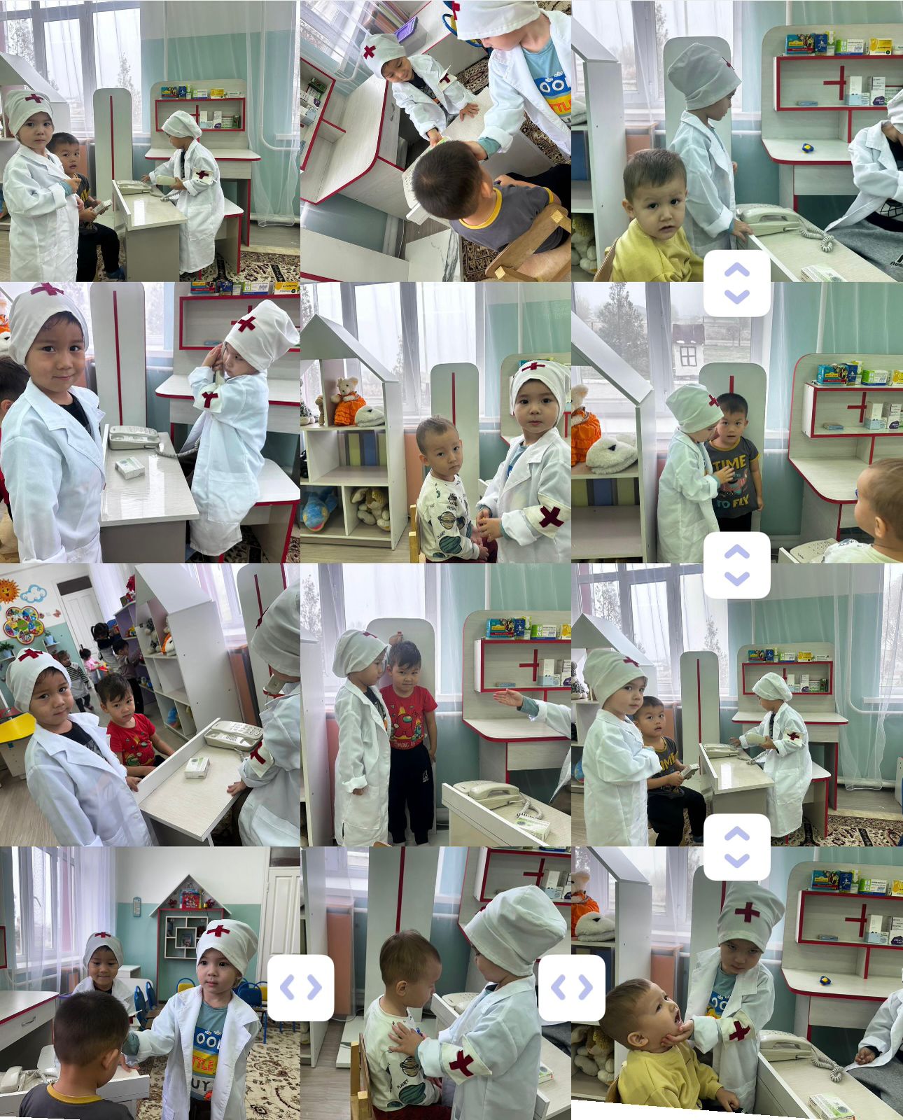 "Айгөлек" ортаңғы тобы. "Дәріхана” тақырыбындағы сюжеттік-рөлдік ойын олардың айналасындағы мамандықтармен танысуына, сөздік қорын кеңейтуге, рөлмен ойнау арқылы өзіндік мінез-құлқын қалыптастыруға көмектесу.