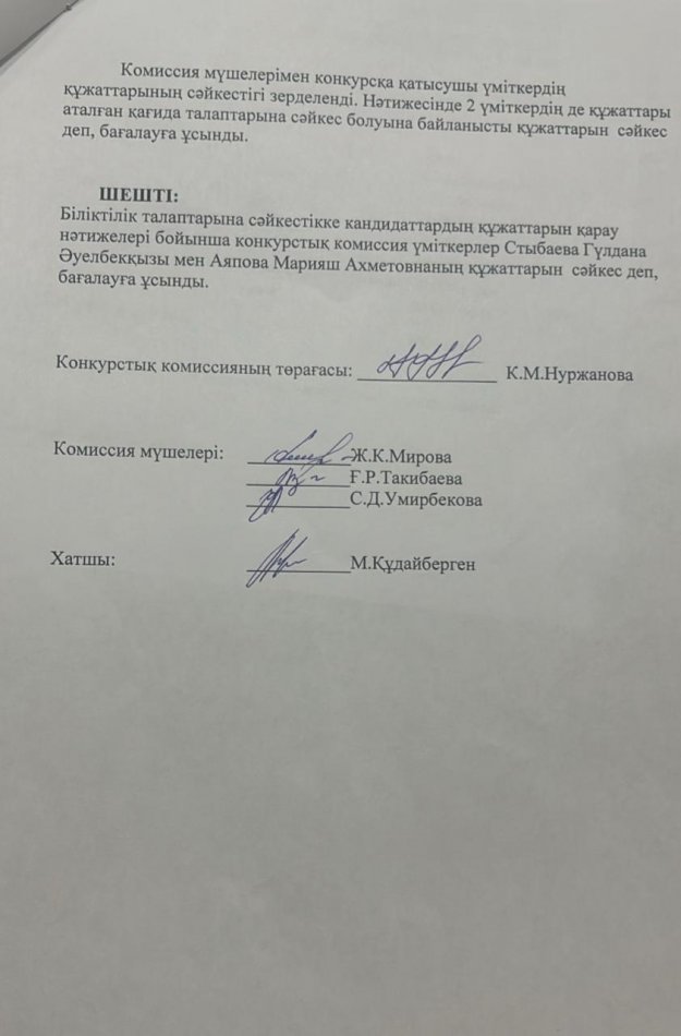 Педагог лауазымына орналасуға конкурс өткізу